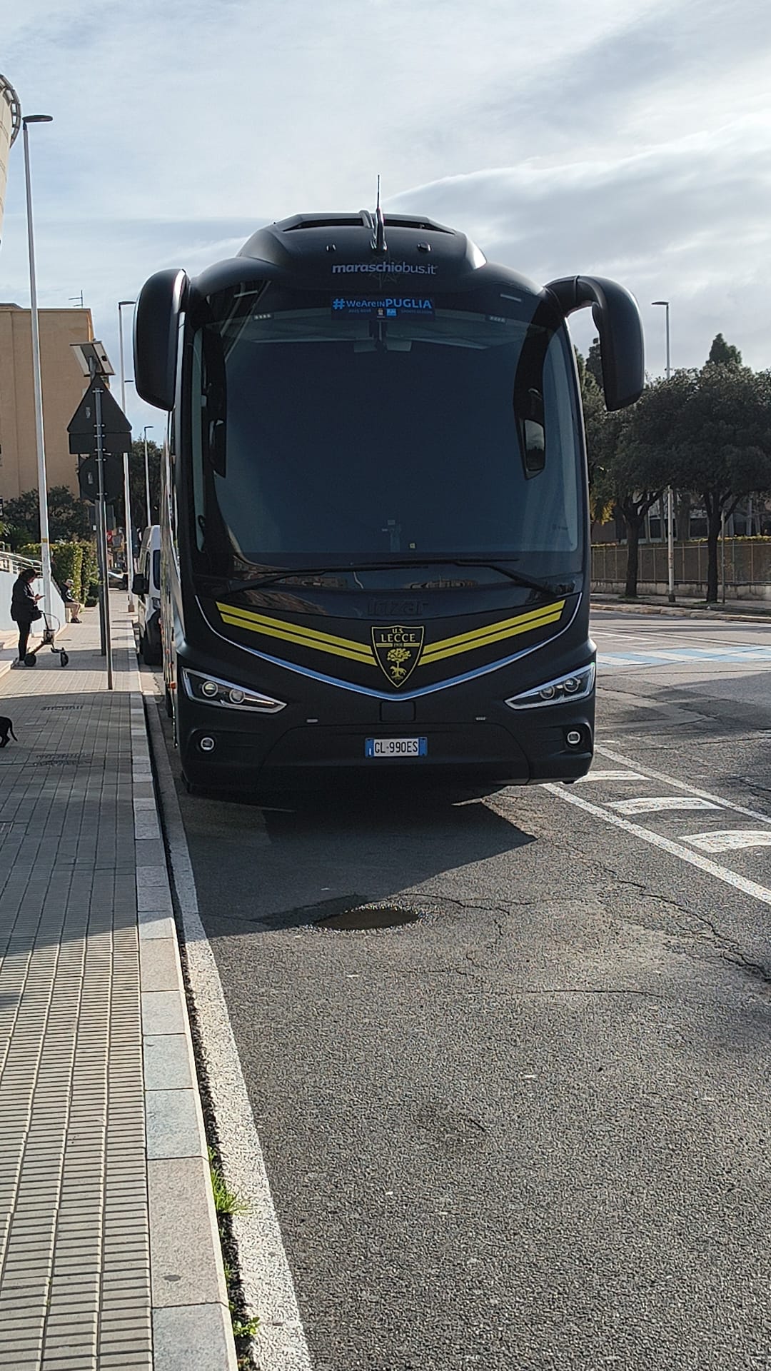 Nonostante il mare di mezzo e la possibilità di noleggiare un pullman in Sardegna per evitare la lunga trasferta, il Lecce ha scelto di far arrivare nell'isola anche il bus ufficiale della squadra, che stasera accompagnerà i salentini dal T Hotel alla Unipol Domus e quindi all'aeroporto per il rientro in Puglia.