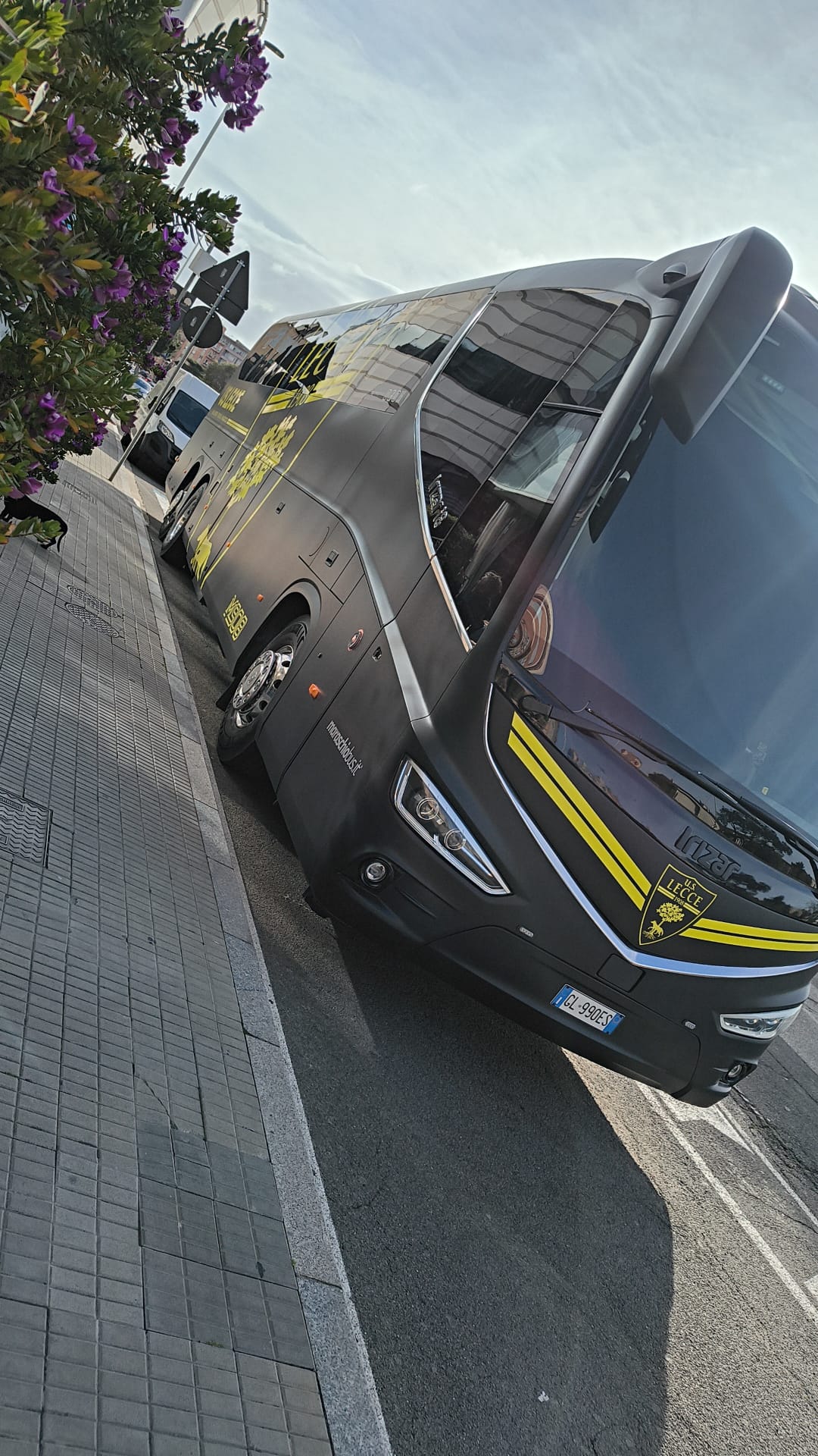 Le foto di Maria Laura Scifo che mostrano il bus del Lecce parcheggiato stamattina davanti al T Hotel, quartier generale del Lecce in questa trasferta sarda: