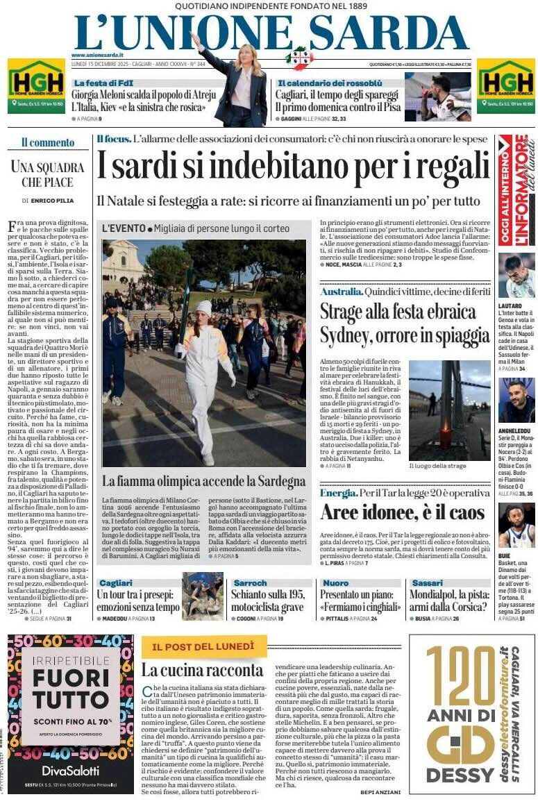 "Cagliari, il tempo degli spareggi. Il primo domenica contro il Pisa". Così titola L'Unione Sarda nel taglio alto della prima pagina. Nelle pagine sportive: "Adesso inizia il bello per il Cagliari". Quattro nelle prossime cinque gare con dirette concorrenti. A cominciare dal Pisa. La squadra di Pisacane è rientrata da Bergamo sconfitta ma sempre più consapevole delle proprie forze.