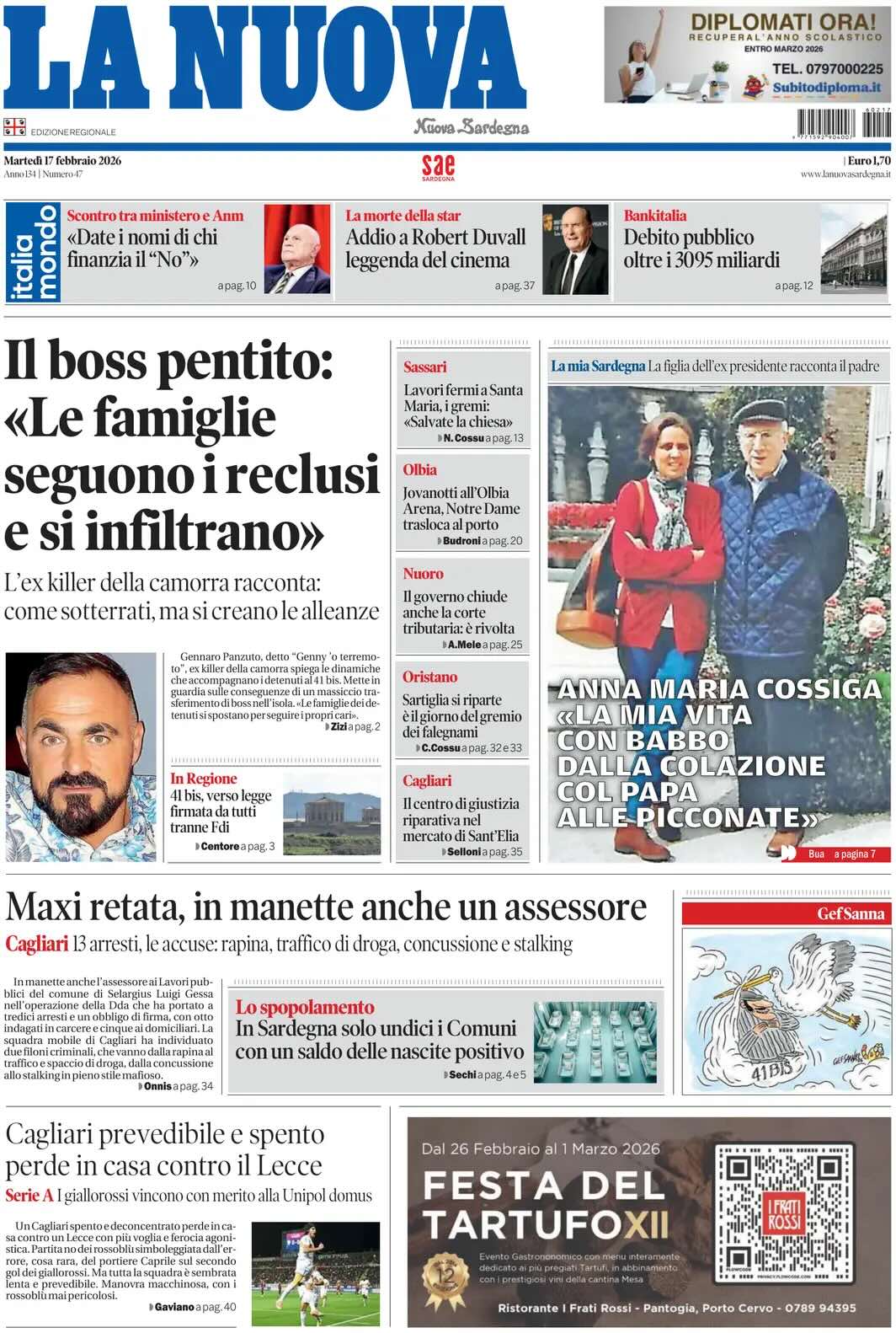 La Nuova Sardegna in prima pagina titola: "Cagliari prevedibile e spento, perde in casa contro il Lecce". Serie A, i giallorossi vincono con merito alla Unipol Domus.