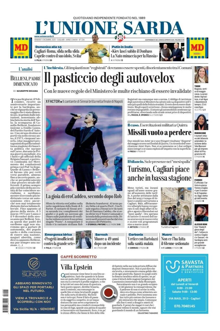 "Cagliari-Roma, sfida nella sfida. Caprile contro il suo idolo Svilar". Questo il titolo che campeggia nel taglio alto della prima pagina de L'Unione Sarda.