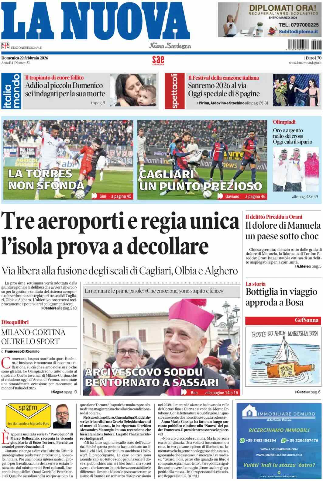 "Cagliari, un punto prezioso", è la fotonotizia nella prima pagina de La Nuova Sardegna. Nelle pagine sportive: "Cagliari, è un punto che vale". I rossoblù interrompono la serie negativa imponendo il pareggio alla Lazio. Occasione d'oro per Adopo in avvio, nella ripresa meglio gli ospiti. Espulso Mina.