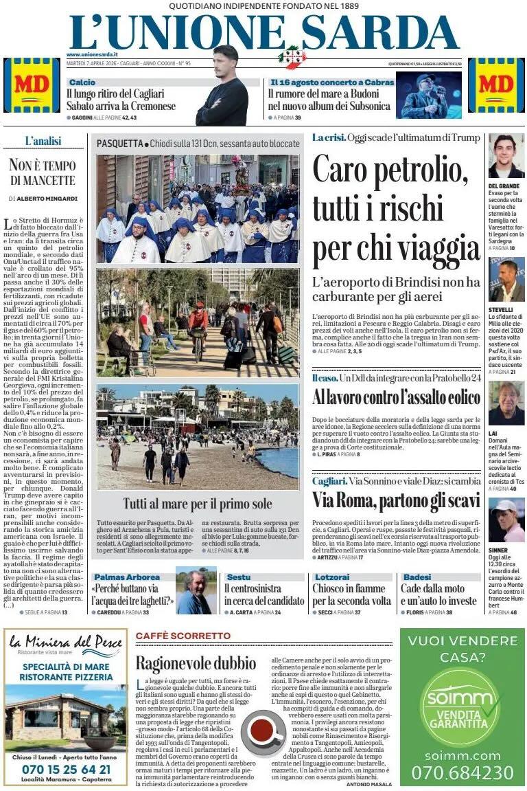 "Il lungo ritiro del Cagliari. Sabato arriva la Cremonese". Così titola nel taglio alto della prima pagina L'Unione Sarda. A pagina 43: "Cinque giorni per ritrovare il vero Cagliari". Borrelli, Zappa e Mazzitelli tra le possibili novità sabato.