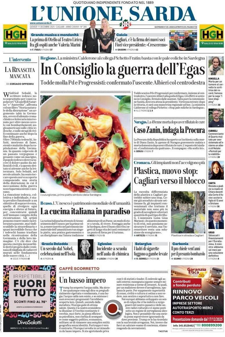 "Cagliari, c'è la firma dei nuovi soci. Fiori vice presidente: "Cresceremo". Questo il titolo de L'Unione Sarda nel taglio alto della prima pagina.