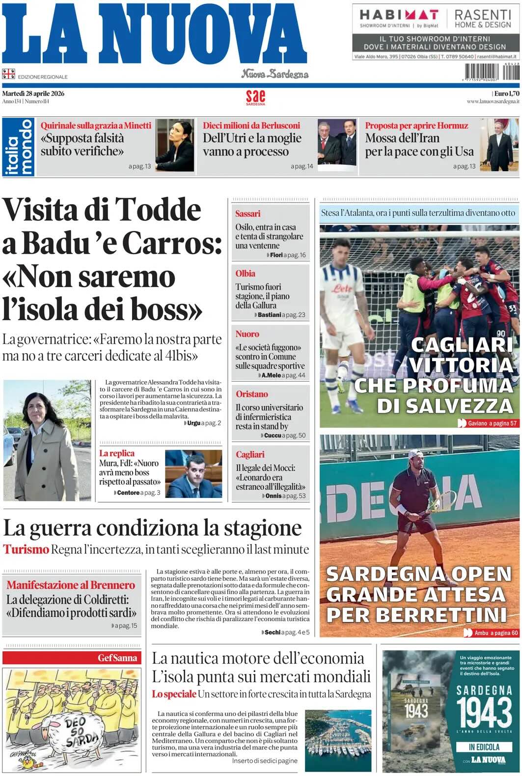 Nella prima sportiva: "Profumo di salvezza". Il Cagliari batte l'Atalanta e fa un passo forse decisivo sulle concorrenti. Due gol a freddo di Mendy, doppietta di Scamacca, poi la decide Borrelli.