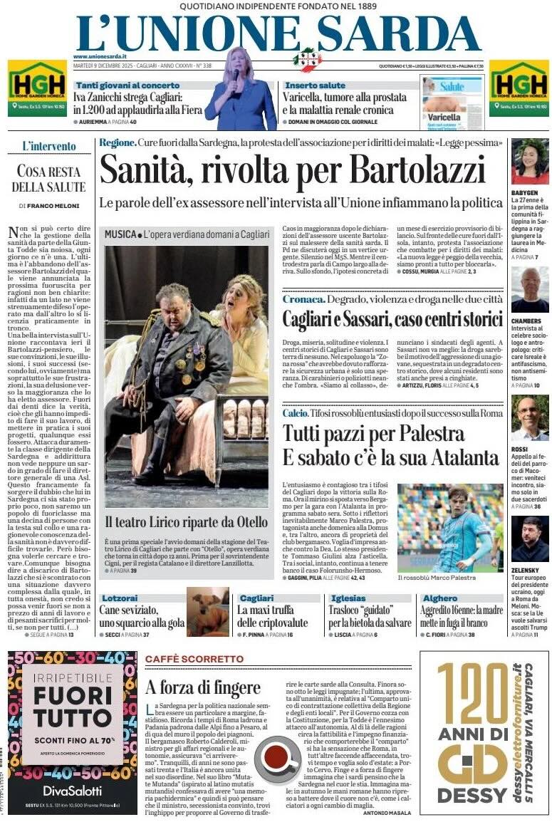 Nella prima sportiva: "Palestra è un treno. E sabato a Bergamo sfida la sua Atalanta". E' stato devastante anche contro la Roma. Il Cagliari se lo tiene stretto fin che può.