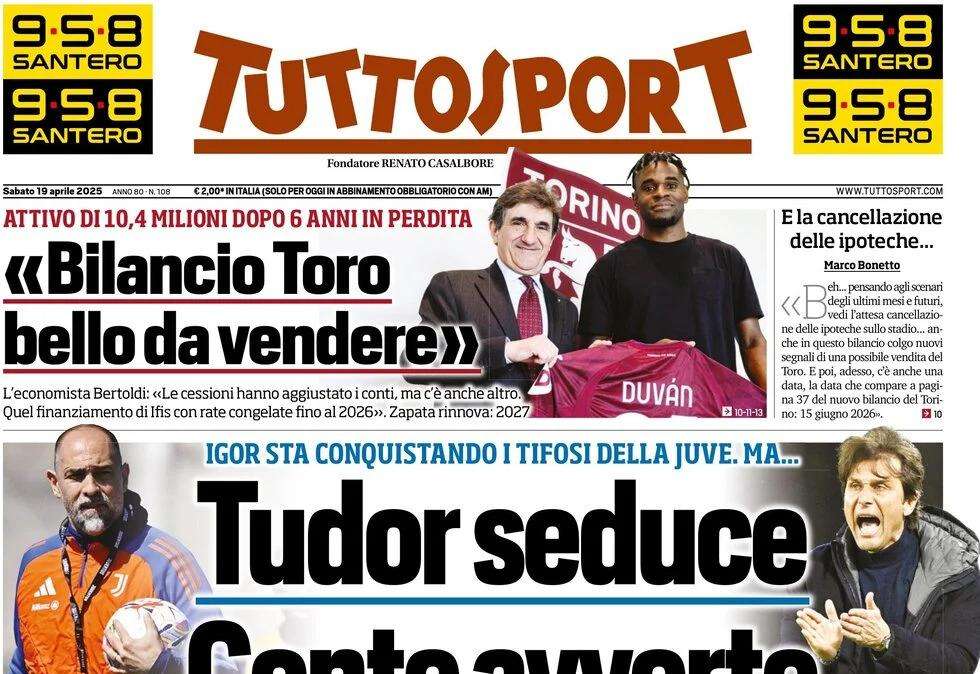 "Tudor seduce, Conte avverte". Questa l'apertura di Tuttosport. Antonio: «Ho capito che a Napoli tante cose non si possono fare». Igor sta conquistando i tifosi della Juve. Ma....